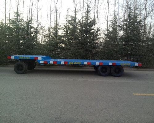 重钢平板拖车比较适用范围:适合重型产品的短途中转、移库、机械、物流、下线等作业运输。